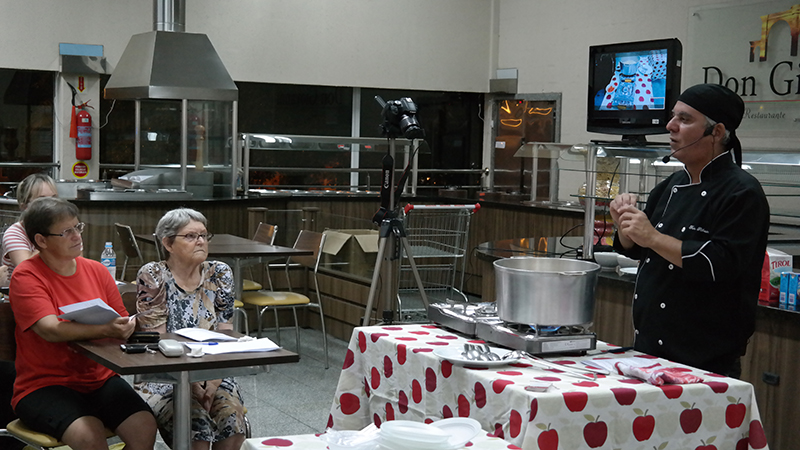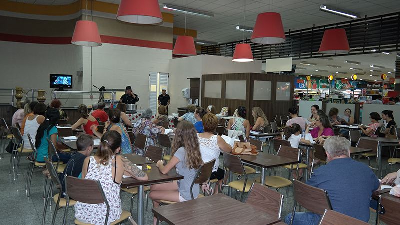 O curso Sabores Bistek é realizado para os clientes do Clube Amigo Bistek. No dia do evento são arrecadados alimentos que serão entregues a uma instituição beneficente de Criciúma. No evento de terça-feira, a beneficiada foi a Casa de Repouso Bom Jesus. “Para este ano, iremos realizar uma edição do curso a cada mês, exceto em abril que ele não ocorrerá. Porém, para agosto, duas edições já estão programadas”, explica Maiara.