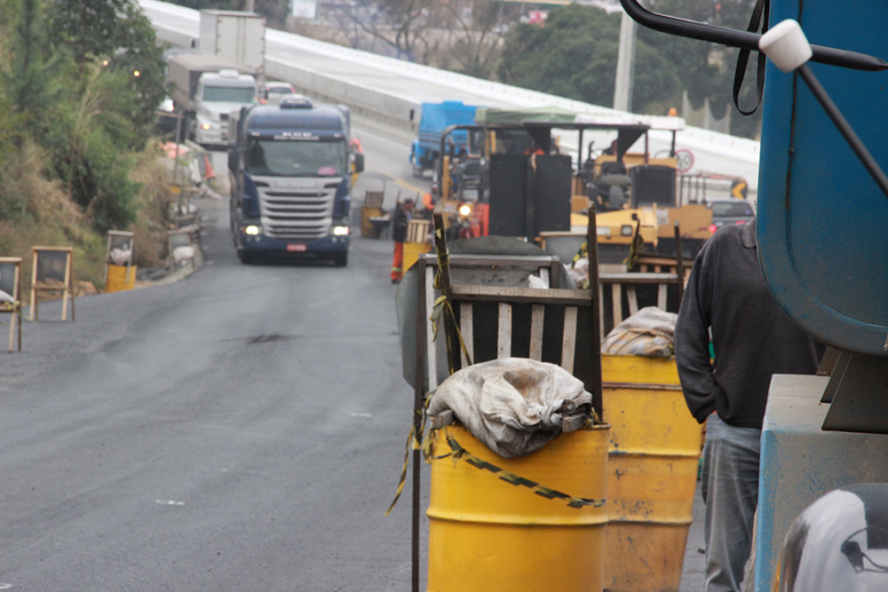Na manhã da última quinta-feira, 28, o fluxo de veículos no sentido Norte-Sul após a ponte sobre o Rio Tubarão, foi redimensionado para faixa lateral construída nesta semana, abrindo espaço para aplicação das camadas de pavimento pelo antigo traçado de pista. Também na terça-feira, 26, o tráfego no sentido Sul-Norte foi liberado, parcialmente, para construção das proteções laterais de concreto. Na quarta e quinta-feira, o fluxo foi redimensionado para o desvio lateral, dando continuidade à construção das barreiras.
