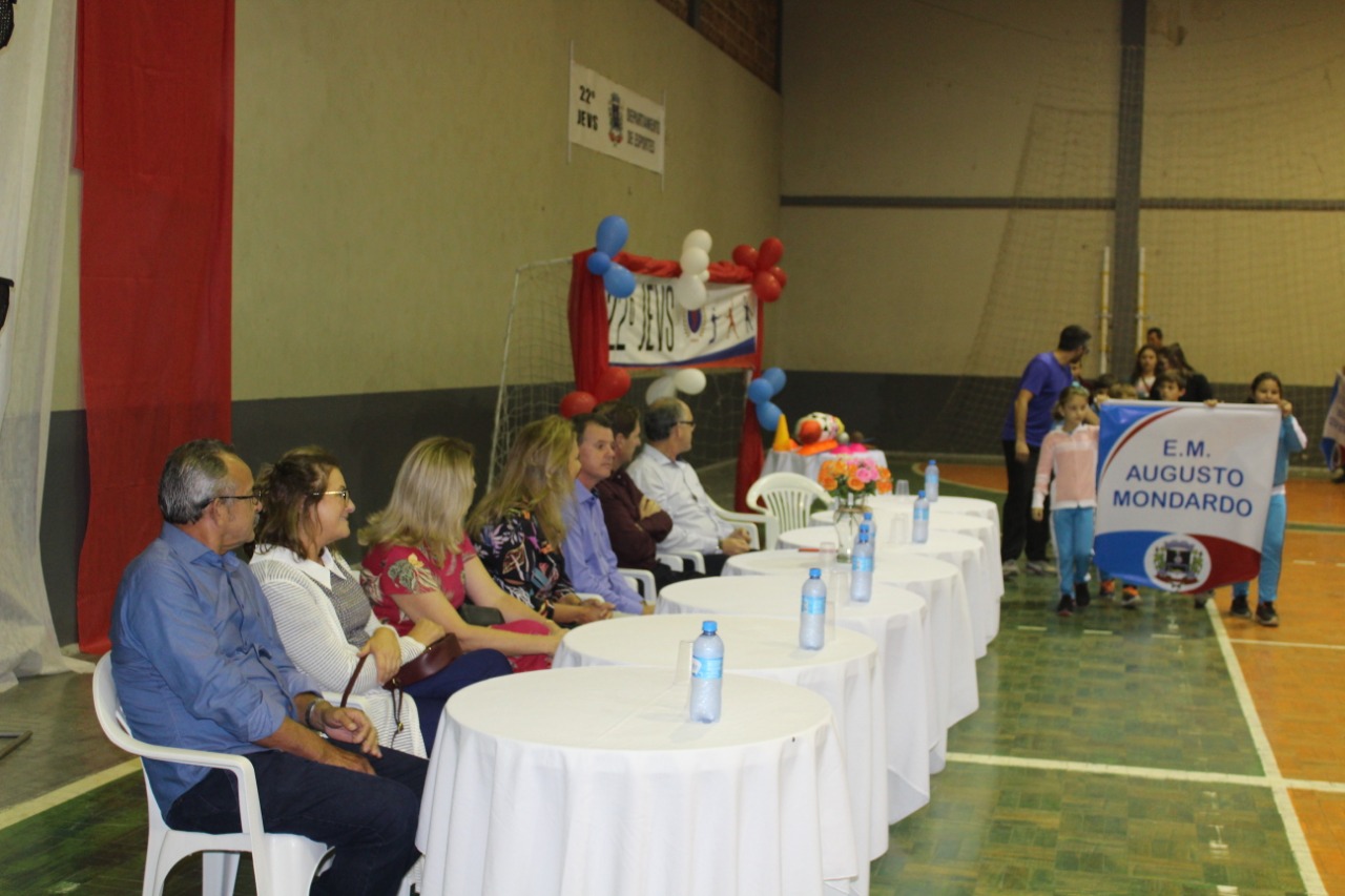 O diretor municipal de esportes, Hériton Sandrini, o Babu agradeceu a parceria da secretaria de educação para desenvolver os jogos escolares. “É um momento muito especial numa noite chuvosa contar com a presença de muitos pais conduzindo os seus filhos na abertura da competição. A intenção da competição é integrar a escola, a comunidade, os alunos e as famílias e hoje vocês pais que se envolveram dando um exemplo aos seus filhos. A minha vida foi contada aqui na condição de criança com sonhos no esporte, de atleta, de técnico e hoje como diretor de esportes. Quero agradecer ao prefeito Geio, Zé e toda equipe do esporte pelo apoio e suporte para desempenhar as atividades no município”, revelou emocionado.