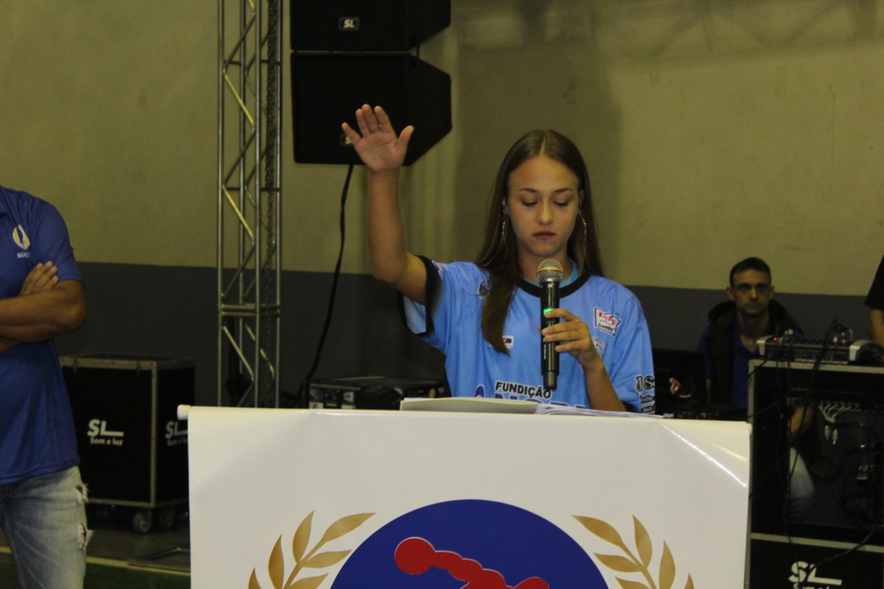 O evento contou com também com a presenças de alunos das escolinhas que conduziram as bandeiras e o acendimento do fogo simbólico, além do juramento dos alunos/atletas.