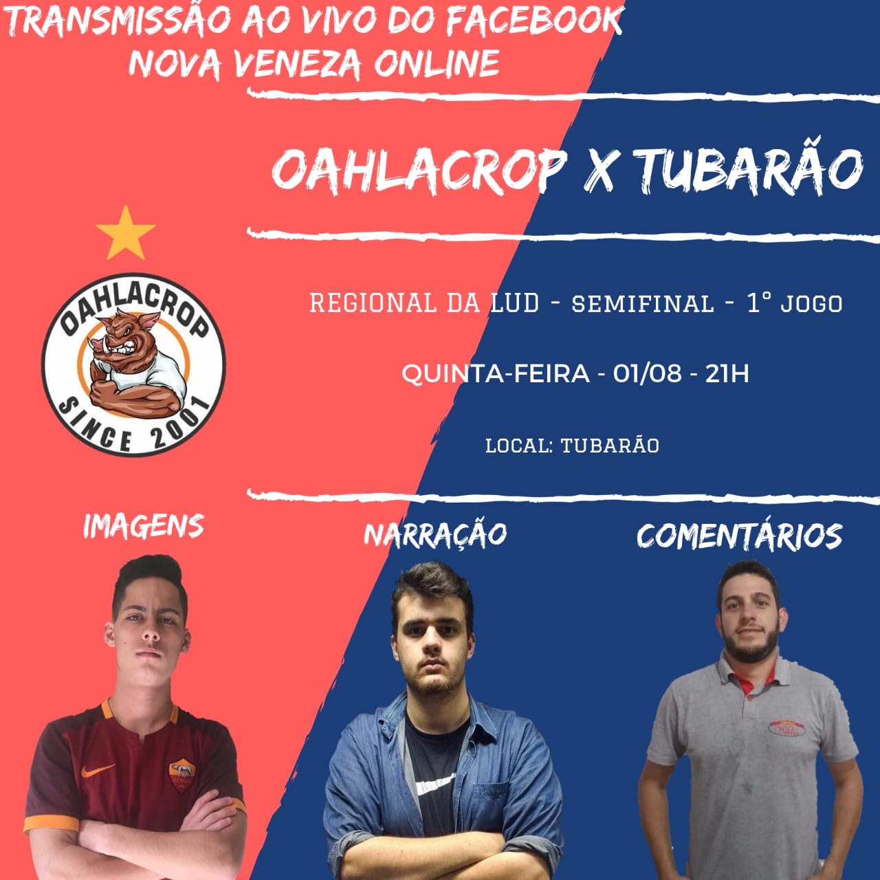 O Oahlacrop entra em quadra nesta quinta-feira (1), às 21h, pela semifinal do Campeonato Regional da LUD. O time comandado por Nelsinho Ghislandi enfrenta a equipe do Tubarão sub-20. Serão dois jogos, e o primeiro acontece em Tubarão, decidindo a fase em Nova Veneza, na próxima quinta feira (8).