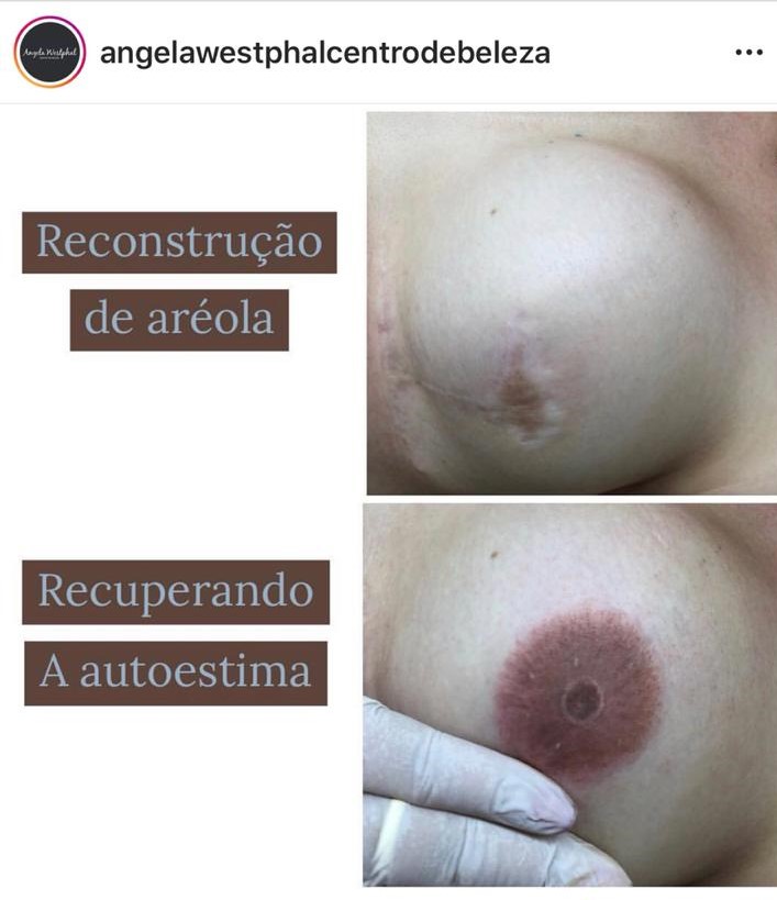 Muitas mulheres que fazem a mastectomia ficam sem aréola e após um ano de cirurgia, é possível podemos fazer reconstrução! Elevando a autoestima da paciente.