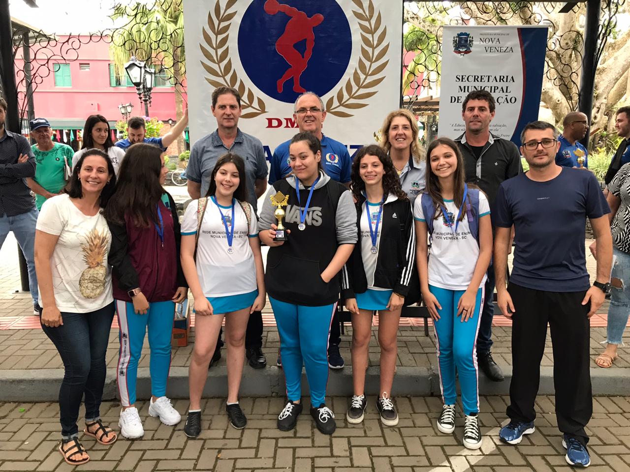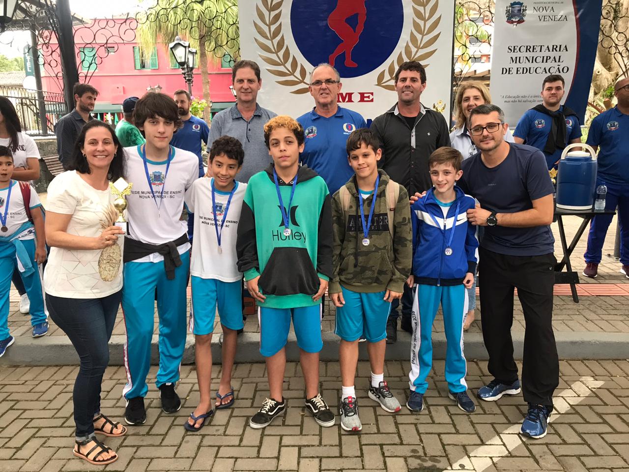 As Escolas Municipais Bairro Bortolotto e Caravaggio conquistaram o ouro e prata, respectivamente, nas categorias feminino e masculino. A terceira colocação no masculino ficou com a Escola de Educação Básica Humberto Hermes Hoffmann, enquanto no feminino a medalha ficou com a Escola Municipal Líbero Ugioni.