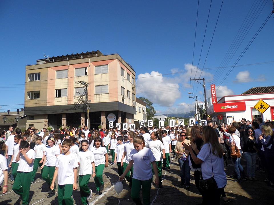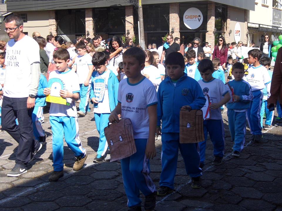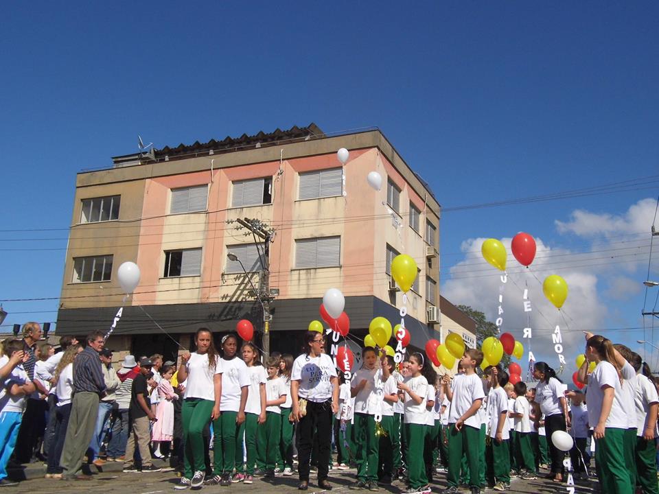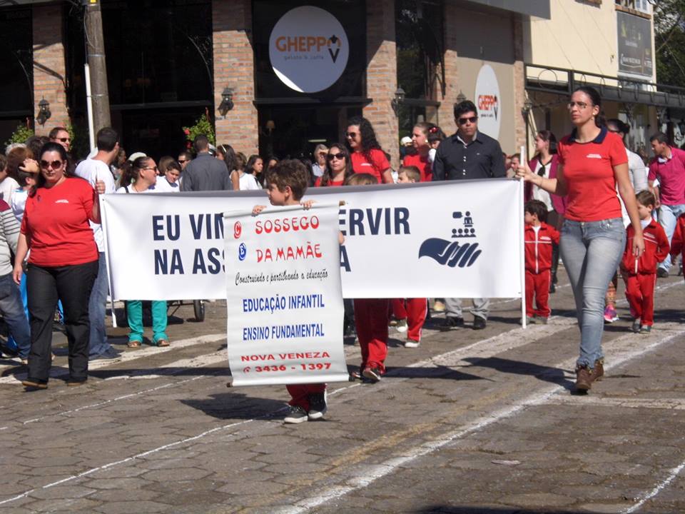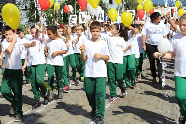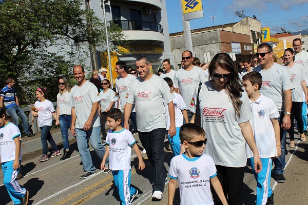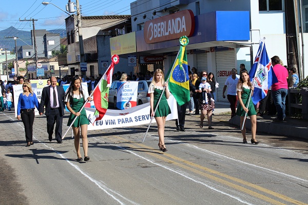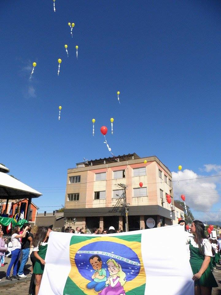 O desfile cívico em comemoração ao dia da Independência do Brasil, nesta segunda-feira (7), reuniu um bom público no centro de Nova Veneza. A programação começou às 9h30, com as jovens trazendo as bandeiras do Brasil, Estado e Município. Os desfiles ocorrem na rua dos Imigrantes, passando pelo palanque de autoridades na praça Humberto Bortoluzzi. Um dos momentos que encantou o público foi quando as crianças das séries iniciais EEB Abílio Cesar Borges soltaram balões coloridos brancos, amarelos e vermelhos externando sentimentos de amor, paz, alegria.