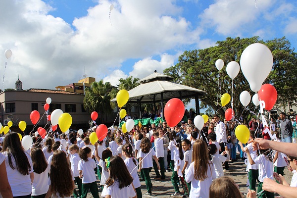 Um dos momentos marcantes foi as crianças soltando balões coloridos externando sentimentos de amor, paz e alegria.