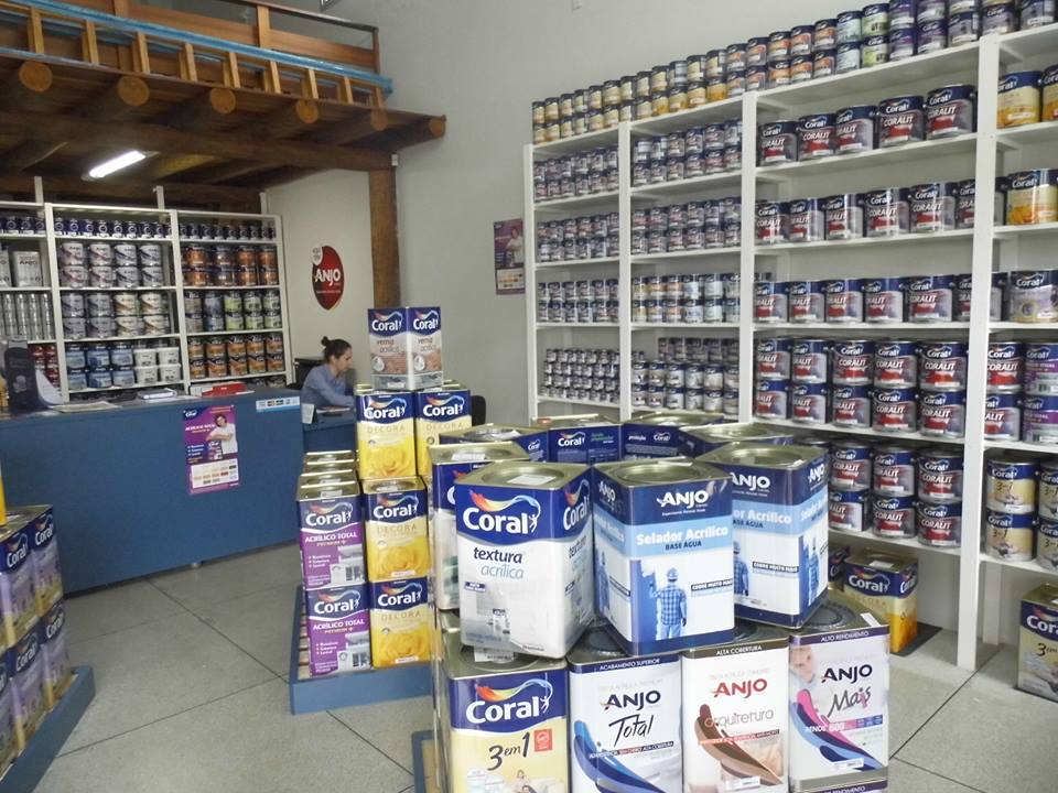 Além dos produtos da marca Coral, a loja conta também com tintas das marcas Anjo, Sherwin-Williams e Osmocolor, e uma variedade de pinceis da linha Atlas.