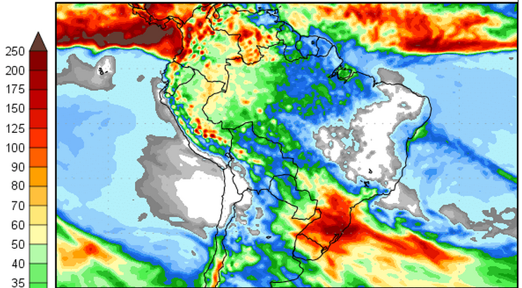 Figura 1 – Previsão de precipitação acumulada no período de 08 a 11/10 (National Centers for Environmental Prediction).