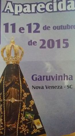 A comunidade de Garuvinha, interior de Nova Veneza comemora neste final de semana, nos dias 11 e 12 de outubro, a festa em honra a Nossa Senhora Aparecida, padroeira do Brasil. A programação religiosa começa no domingo (11), às 19h, com transladação partida de Mãe Luzia, em Criciúma até a comunidade. Já as 19h30, uma Celebração Eucarística animada pela comunidade de Mãe Luzia. Na parte recreativa, a gastronomia com churrasco e saladas. Após o jantar, sorteio de prêmios.