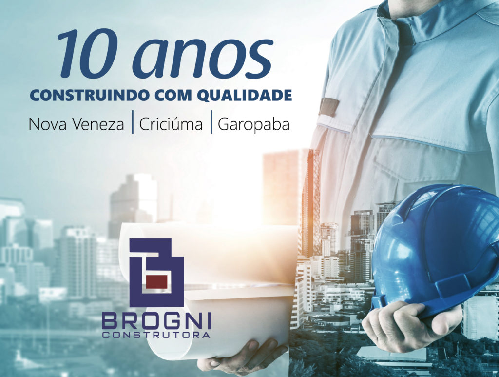 A Construtora Brogni comemora 10 anos, conquistou o mercado em Nova Veneza e expandiu para Criciúma e Garopaba. Entre as obras estão casas, residenciais e prédios.