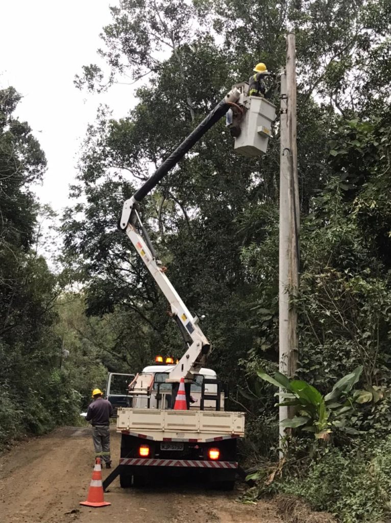 De acordo com o eletrotécnico Fernando Nolla, nesse dia foram registradas várias ocorrências relacionadas a problemas nas redes elétricas, principalmente com cabos arrebentados devido à queda de galhos e árvores, queima de elo fusível no transformador entre outros danos. “O serviço executado incluiu a troca de barramento (tripléx 25 isolado) a fim de evitar problemas futuros. Também foi realizada a poda nas árvores próximas a rede para prevenir incidentes devido aos temporais”, explicou.