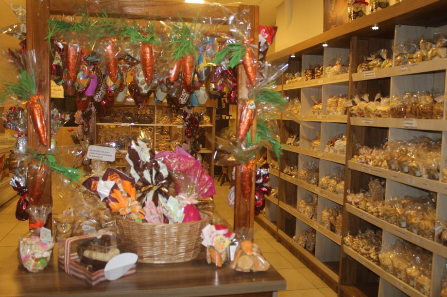 A loja já está com variedades de produtos que vão desde as bolachas decoradas que podem ser compras individualmente, em potes ou até mesmo cestas com outros produtos. Outro item são as colombas pascal, item tradicionais feito especialmente para esta data.