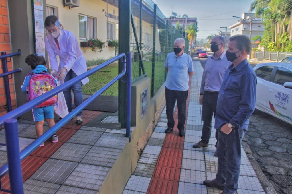 O prefeito Rogério Frigo percorreu as escolas do município para conferir o andamento do retorno. “Estivemos acompanhando a volta das aulas e tudo está dentro do que planejamos. Muitos pais estão acompanhando os filhos até as escolas. E queremos que seja assim, com todos os cuidados, máscara e distanciamento, para que possamos ter um ano letivo tranquilo para todos”, pontua o chefe do executivo.