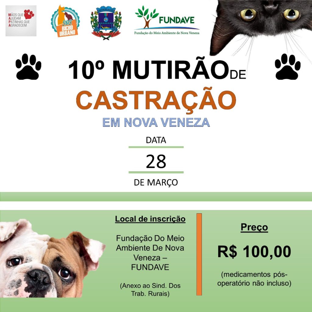 A iniciativa é promovida pelas ONGs SOS Bicho Urbano e Mãos que Ajudam, Patinhas que Agradecem (Mapa), com apoio do Governo Municipal através da Fundação do Meio Ambiente de Nova Veneza (Fundave) que busca trazer conscientização aos donos da importância da castração.