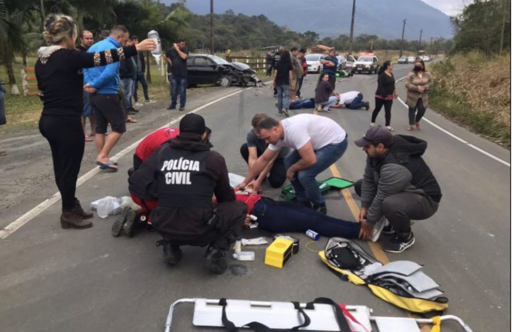 Gabriela chegou a receber os primeiros socorros pela equipe do Serviço de Atendimento Móvel de Urgência (SAMU) e foi encaminhada para o hospital pelo helicóptero do Serviço de Atendimento e Resgate Aeromédico do Sul (SARA Sul). O motorista do Ford Ka fugiu do local sem prestar socorro às vítimas.