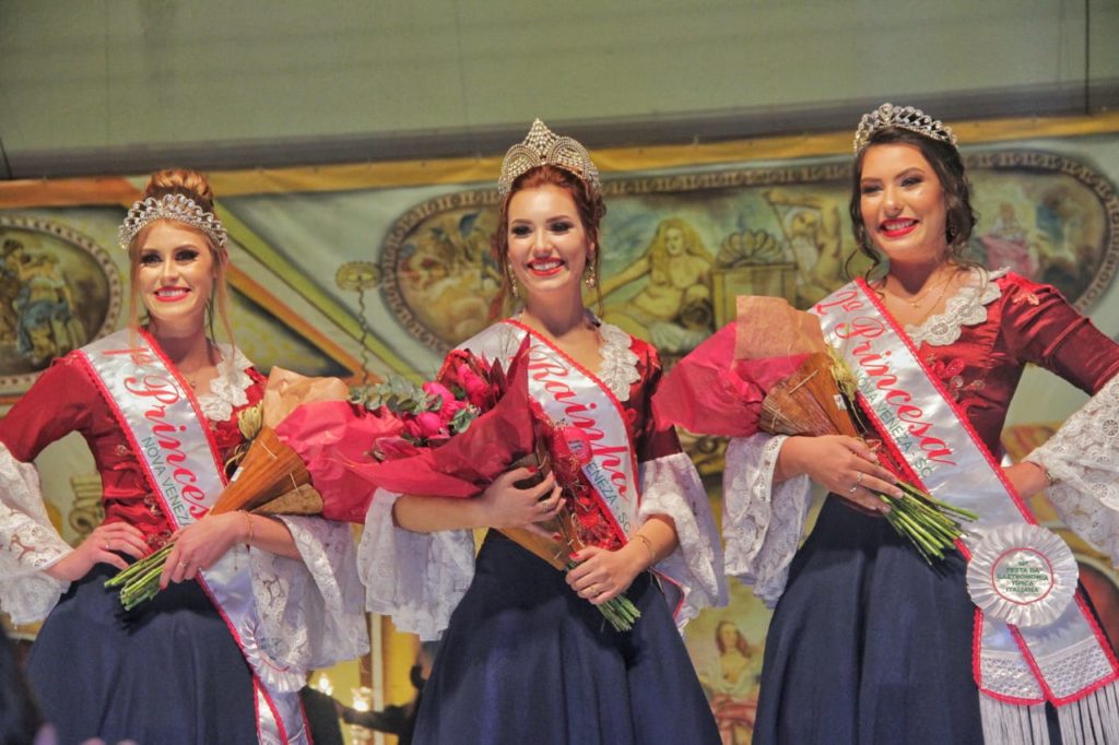 Foi escolhida na noite do último sábado (19), a corte de Rainha e Princesas da 16ª Festa da Gastronomia Típica Italiana, de Nova Veneza. Maria Júlia Colonetti foi eleita a Rainha, Maria Cristina Disner como primeira princesa e Iasmym Vieira como segunda princesa. As três meninas, a partir de agora, vão representar o município.
