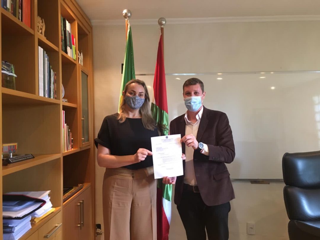 Daniela Reinerh recebe pleitos do prefeito em exercício Aroldo Frigo Júnior