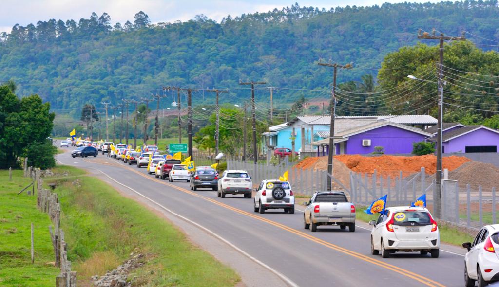 Onda amarela e azul invade carreata do 45 em Nova Veneza