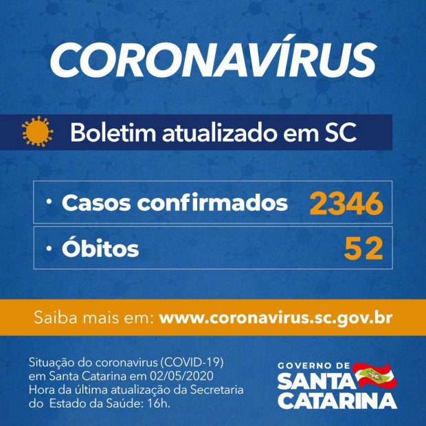 Coronavírus em SC: Governo do Estado confirma 2.346 casos e 52 óbitos por Covid-19