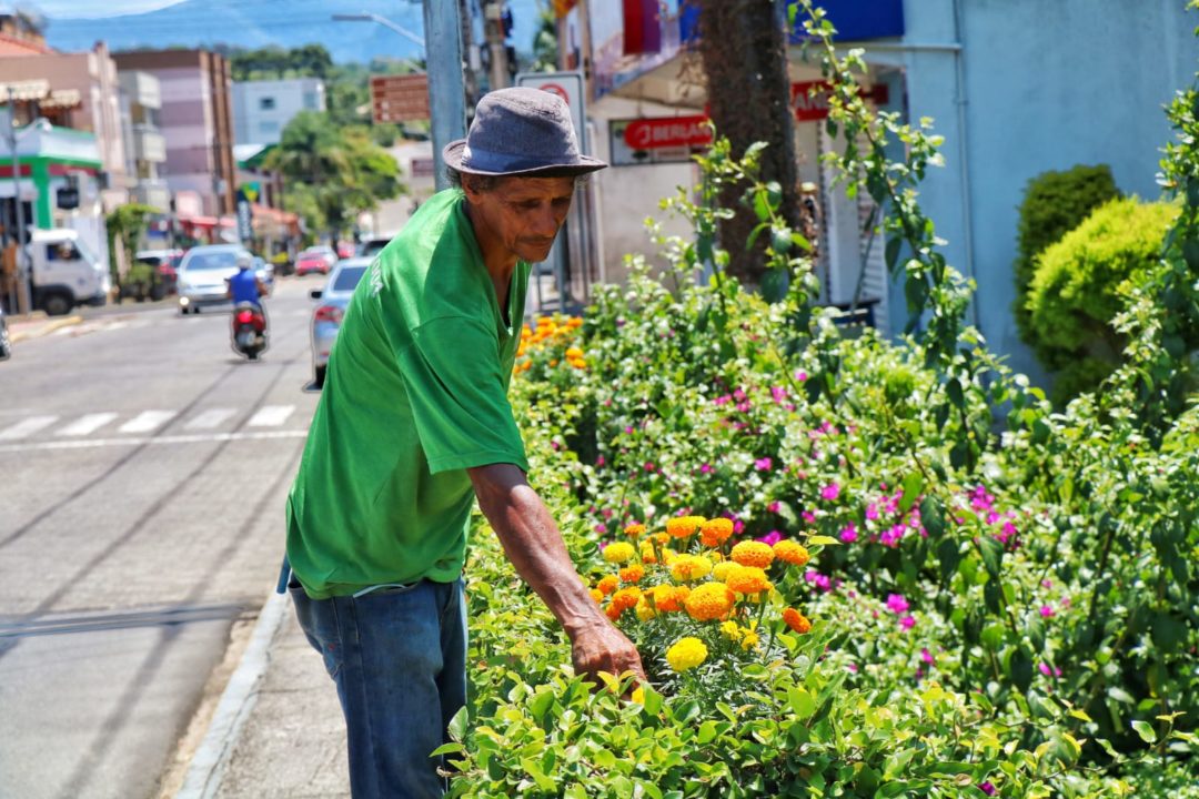 Canteiros e praças bem cuidados colorem a cidade