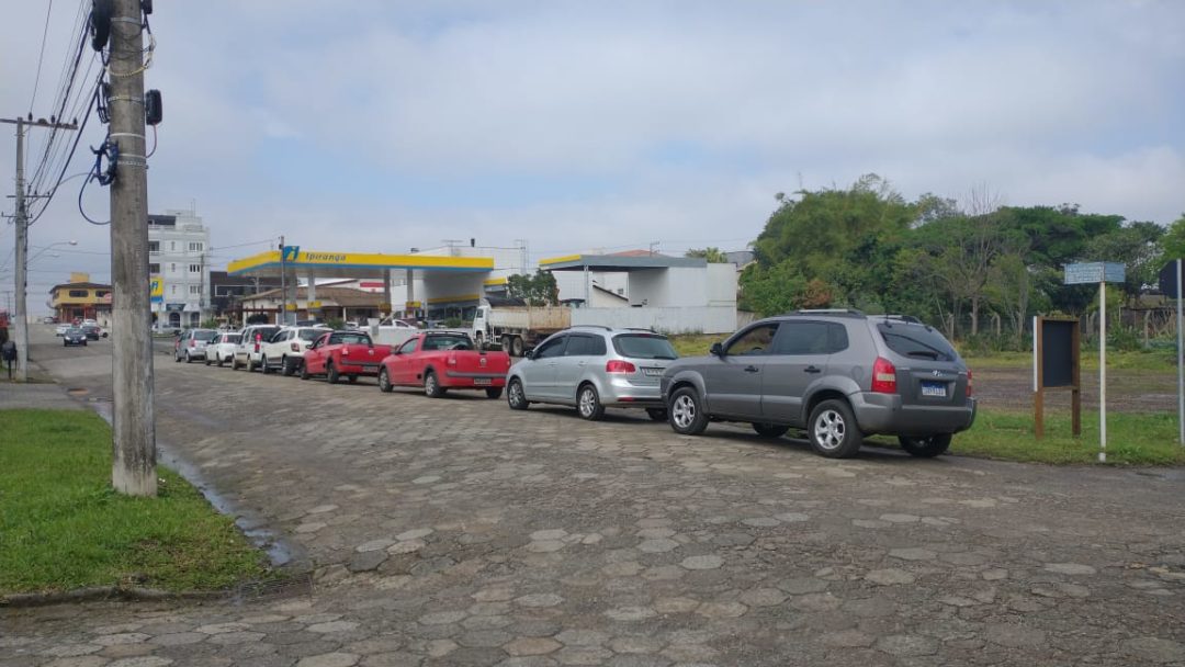 Posto de combustível com fila para abastecer em Nova Veneza