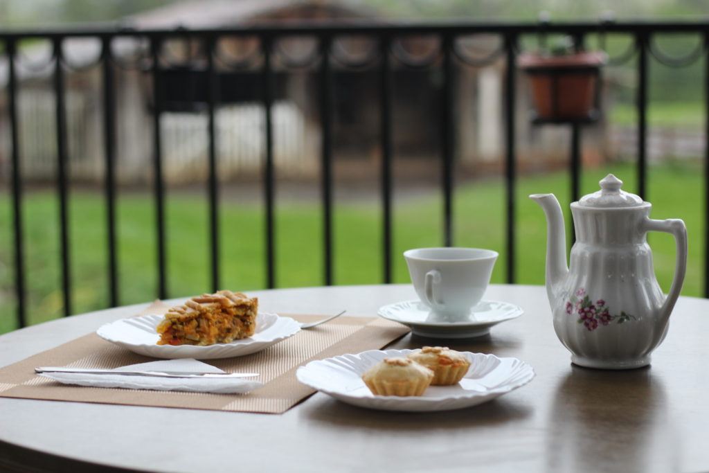 O café colonial contará com uma ampla mesa de receitas como bolos caseiros, tortas especiais, pães salgados, bolinho de chuva, cavaquinho, pão assado na folha de bananeira, empadão, salgados, além de opções servidas no fogão a lenha como sopas, polenta brustolada, panqueca, e outras delícias.