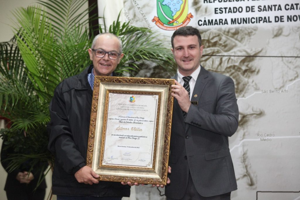 O título de cidadão honorário neste ano, torna o homenageado um conterrâneo. Essa honraria foi concedida em agradecimento aos serviços de cada um. “Cada um de nós sabe a sua razão em especial para homenagear cada um que aqui hoje se tornou cidadão de Nova Veneza. Todos que trabalham, assim como nós trabalhamos aqui na Câmara, para que esta cidade cresça e se fortaleça a cada dia, devem se sentir orgulhosos. Na minha condição de presidente deste Poder Legislativo, quero dizer em nome de todos os meus colegas vereadores o que todos expressam nesta noite: gratidão”, falou o presidente da Casa, Evandro Gava.