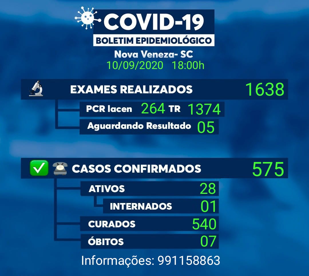 Nova Veneza registra nove curas e sete novos casos de infecção da covid-19